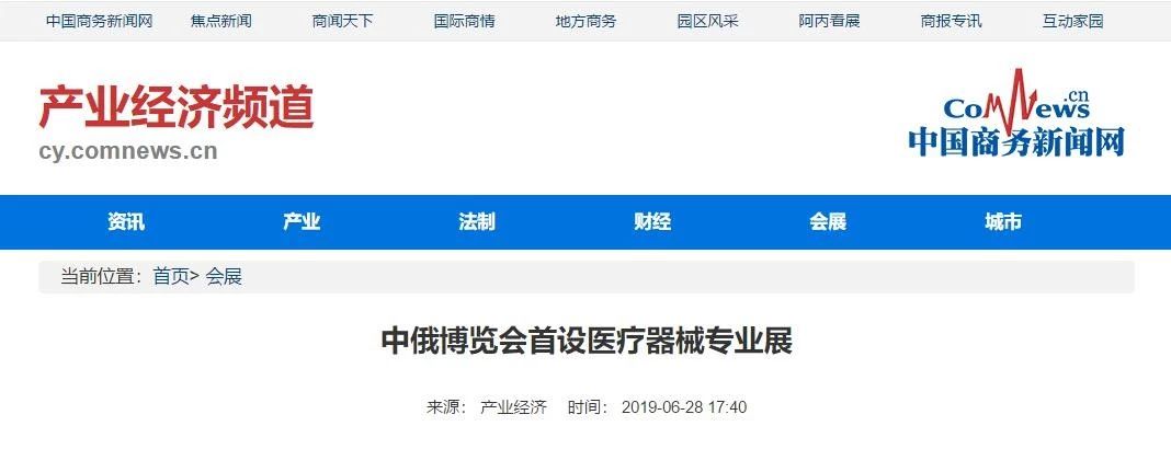 | 中國商務新聞網(wǎng)報道中俄博覽會首設醫(yī)療器械專業(yè)展 | |