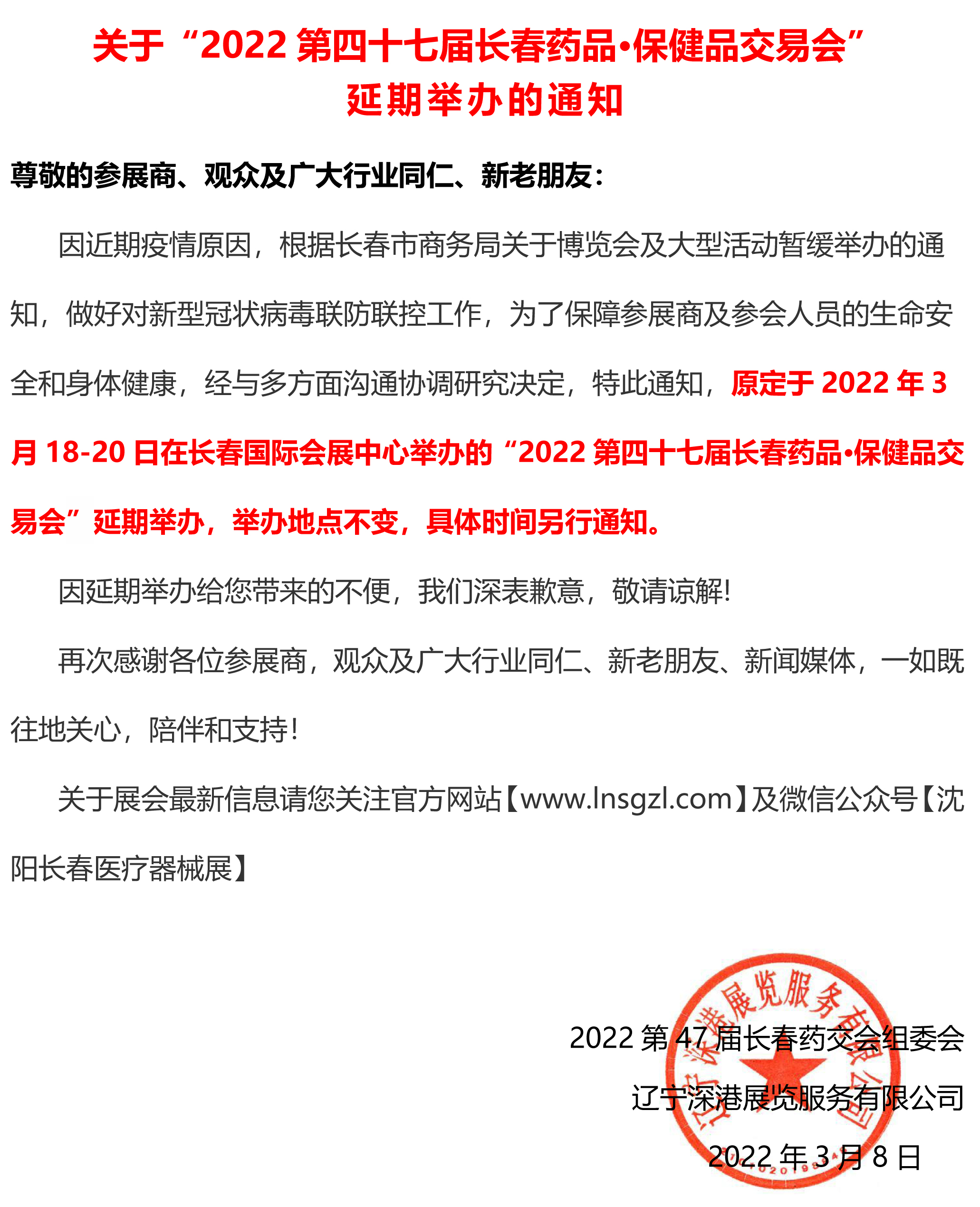 | 延期通知|2022第四十七屆長春藥品·保健品交易會(huì) | |